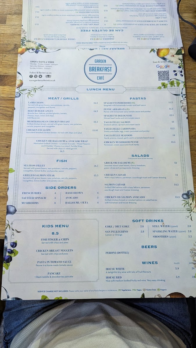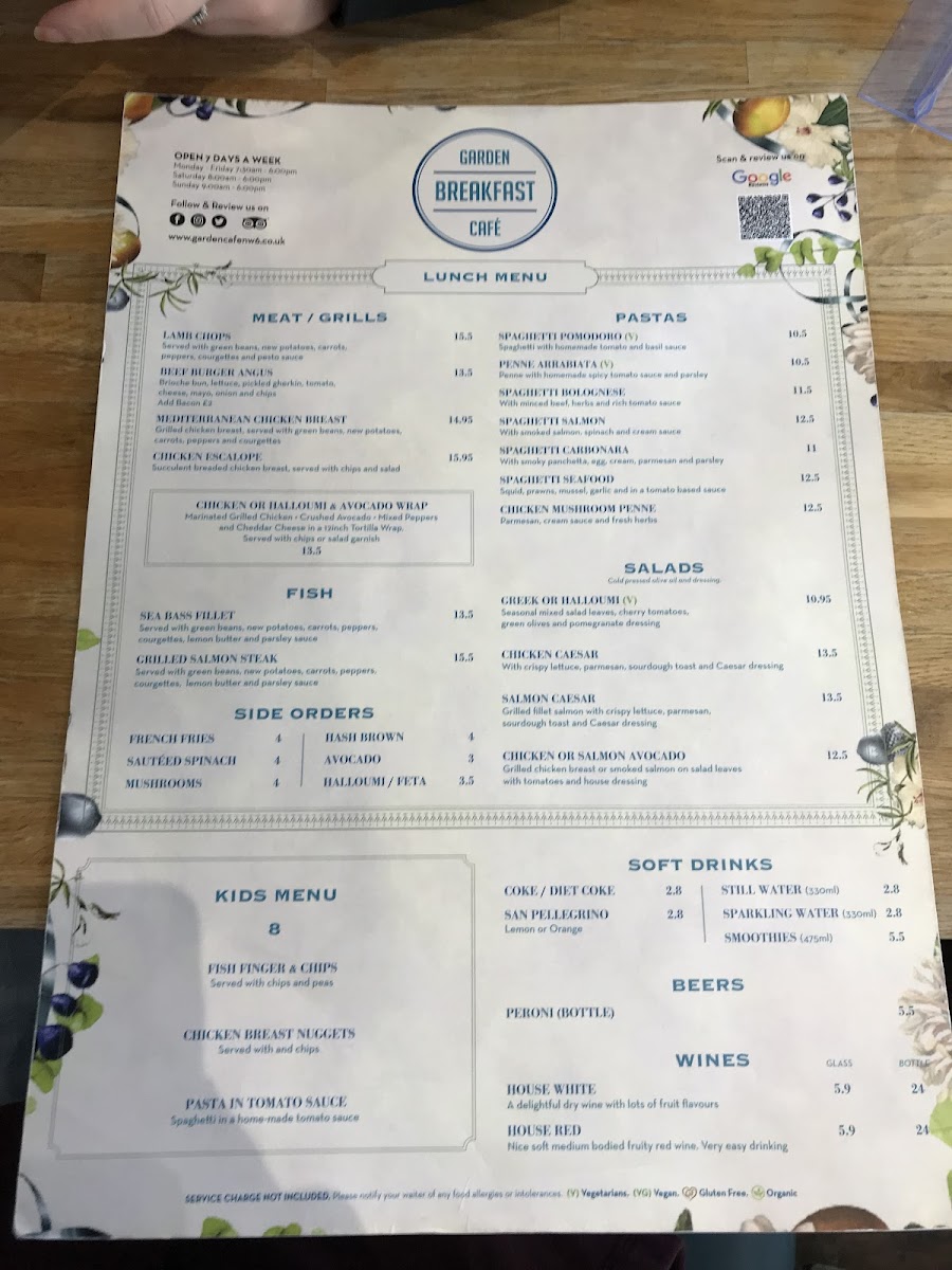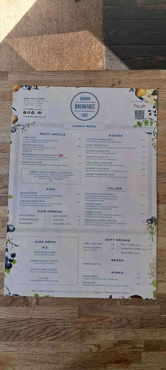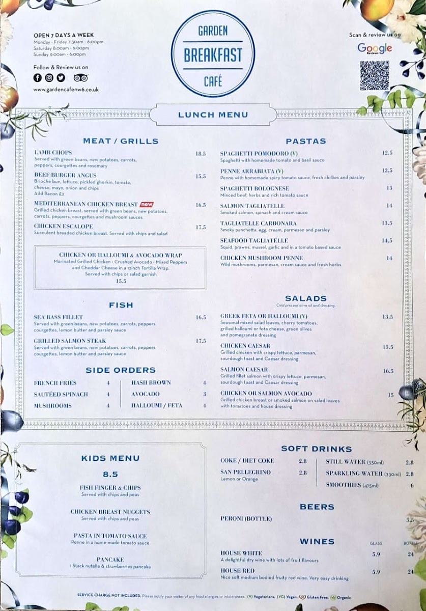 Garden Breakfast Cafe Menu