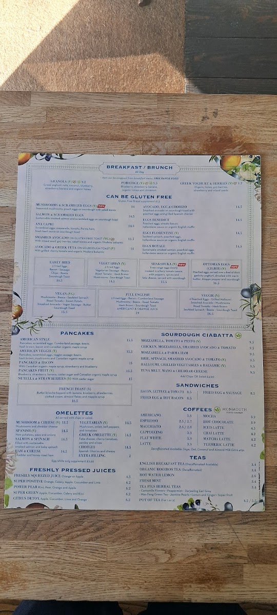 This menu is suitable for both quick orders and casual dining, serving a balance of hearty breakfast items, lighter meals, and beverages. It provides options that can accommodate different dietary preferences, including vegetarian and some gluten-free choices.